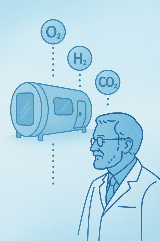 Wodór (H₂) ~0,5%: Wprowadzenie niewielkiej domieszki wodoru cząsteczkowego do mieszaniny oddechowej to unikalne rozwiązanie normobarii. Wodór jest gazem obojętnym dla procesów metabolicznych, ale pełni rolę silnego antyoksydanta – neutralizuje wolne rodniki tlenowe powstające w organizmie. Innymi słowy, dodatek ~0,5% H₂ pomaga zredukować stres oksydacyjny, który mógłby towarzyszyć zwiększonej podaży tlenu. Badania sugerują, że wodór jako najmniejsza cząsteczka łatwo przenika do komórek i może chronić je przed uszkodzeniem oksydacyjnym. Według koncepcji dr. Pokrywki obecność wodoru pozwala spowolnić procesy starzenia wywołane nadmiarem utleniaczy – komora normobaryczna jednocześnie dotlenia tkanki i zapobiega skutkom ubocznym hiperbarii, takim jak uszkodzenia DNA przez wolne rodniki. Stężenie 0,5% jest przy tym znacznie poniżej progu palności wodoru w powietrzu, więc nie stwarza ryzyka wybuchu ani innych zagrożeń. Choć rola wodoru w normobarii jest jeszcze obiektem badań, już teraz traktuje się go jako ważny element ochronny w „optymalnej atmosferze” normobarycznej.